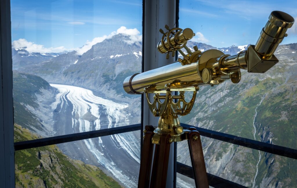 When we touch down, the wind stills and a quiet settles over the ridge. Before me stands Glacier Lookout, a handcrafted 1930s-style fire tower perched 3,600 feet above Valdez Glacier. Sunlight filters through wraparound windows, warming the cozy cabin interior.